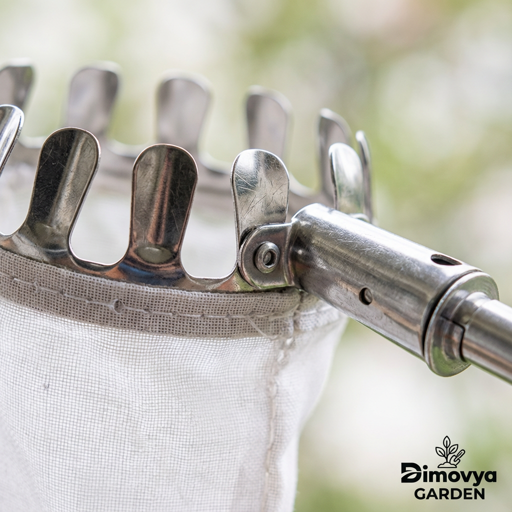 Notre cueilleur de fruits est conçu avec un manche en acier inoxydable renforcé, ce qui le rend résistant et stable, même à sa longueur maximale. Contrairement à d'autres modèles, il ne se plie pas sous le poids des fruits et garantit une prise en main sûre.