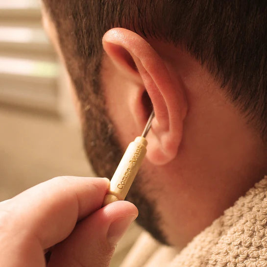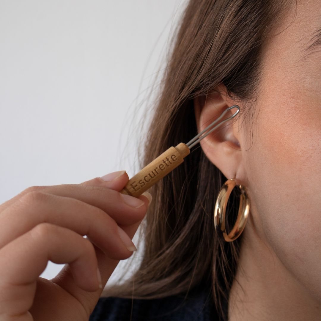 L’Escurette est l’alternative réutilisable et écologique pour un nettoyage des oreilles doux et efficace. Fabriquée à partir de bois naturel et d’inox médical, elle vous accompagne toute la vie.