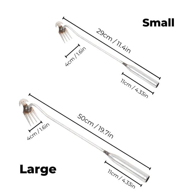 Fabriqué en acier inoxydable renforcé, il est conçu pour durer plusieurs saisons de jardinage. Cependant, pour prolonger sa durée de vie, il est conseillé de le nettoyer après usage et de le stocker au sec pour éviter l’oxydation.