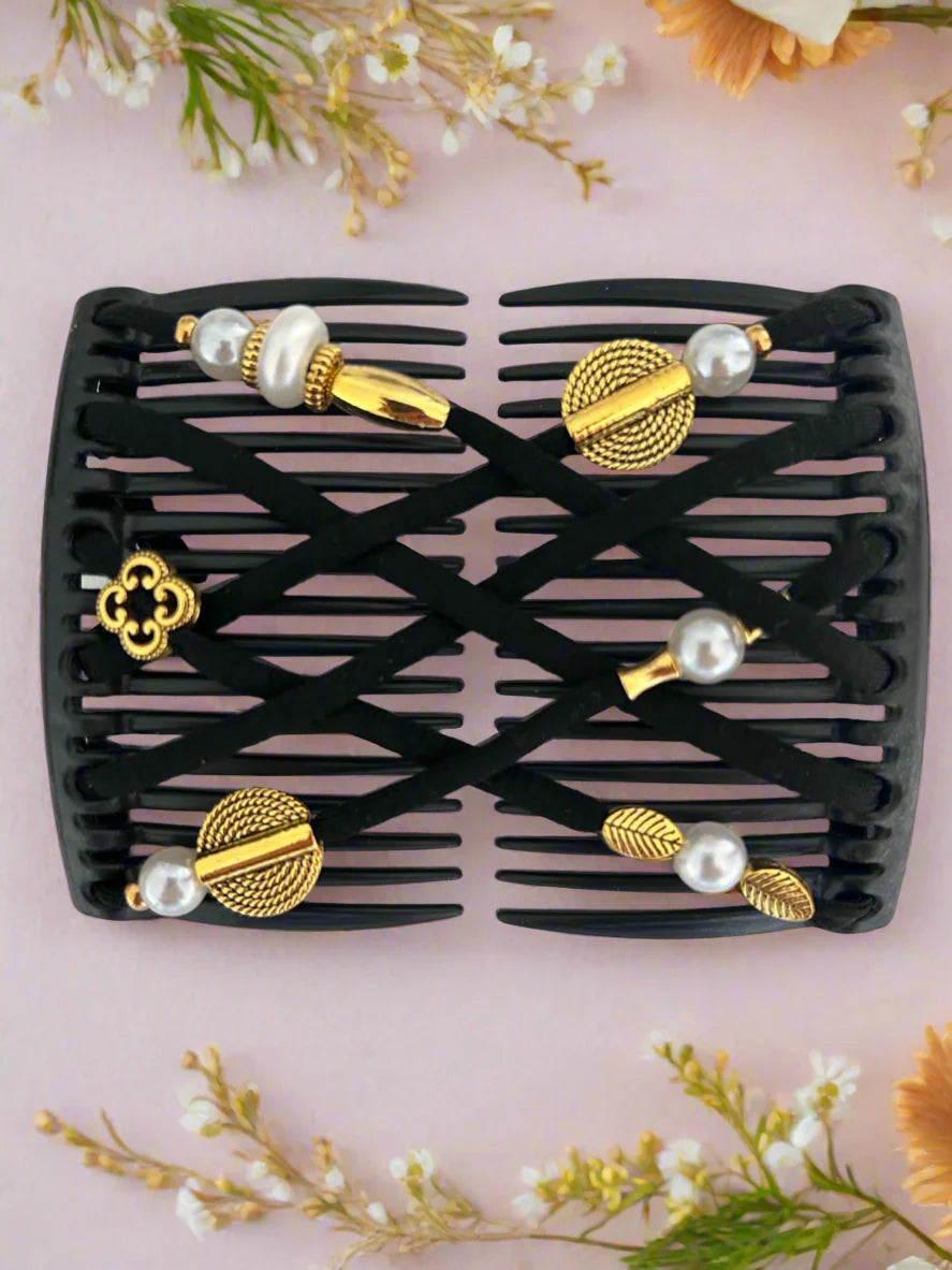 Enfin un accessoire qui sublime ta coiffure sans l’abîmer. Ce Peigne allie confort, maintien et élégance, grâce à ses perles raffinées et son système double peigne. Idéal pour cheveux bouclés, crépus ou épais, il se fixe en quelques secondes… et tient toute la journée.
