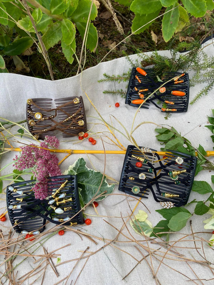 Dis adieu aux élastiques qui tirent et aux pinces qui glissent. Ce Peigne assure un maintien doux, sans douleur, même sur cheveux volumineux. Fait main, il ajoute une touche bijou à toutes tes coiffures. Pratique, léger, beau : tu ne pourras plus t’en passer.