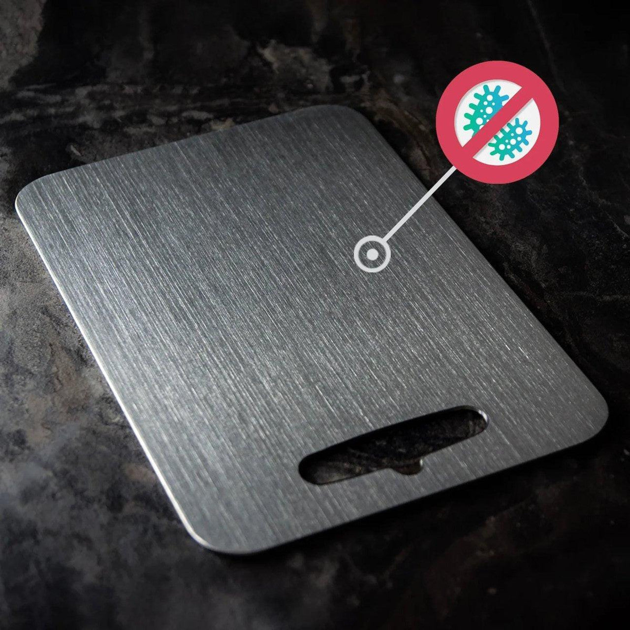 Cette planche à découper offre une surface ultra-lisse qui empêche les résidus alimentaires de s'y accrocher, assurant une hygiène optimale.