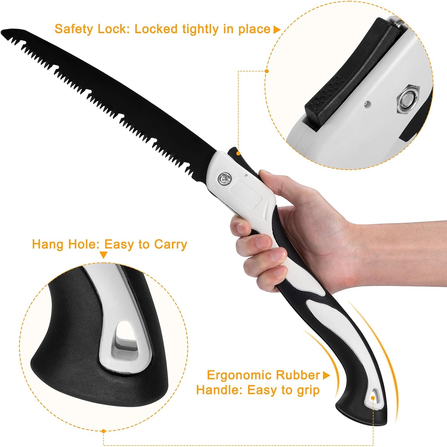 Optez pour une scie robuste et sécurisée conçue pour durer. Grâce à son système de verrouillage renforcé, sa poignée ergonomique antidérapante et ses lames ultra-résistantes, profitez d’une coupe nette et précise sans effort. Idéale pour l’élagage, le bricolage et le bushcraft, elle s’adapte à tous vos besoins avec ses trois lames interchangeables.